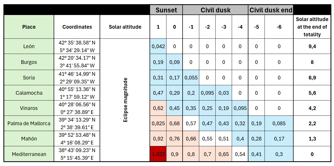 In the table below, you can find how the total length of the umbra changes over the last 10 minutes of totality in Spain (Tab. 1).