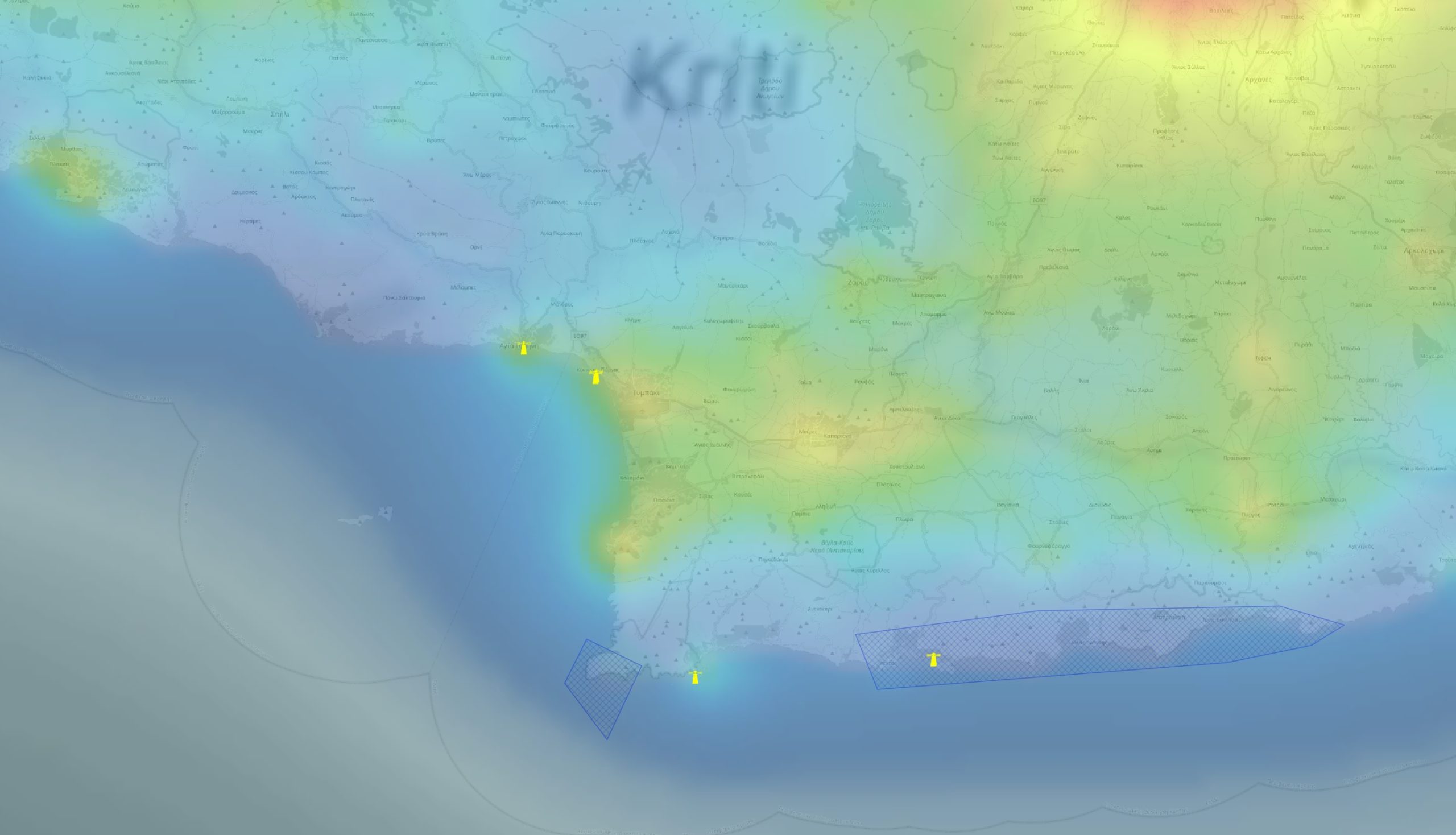 18. East of Lentas – another perfect area for potential stargazing, because the landscape is epic. Moreover, the sky at antisolar direction is not interrupted by artificial light up to 70km. Because of this, the best approach is to set yourself just above the cliff, as distant mountains can slightly hinder distant light pollution. See the Street View example here.