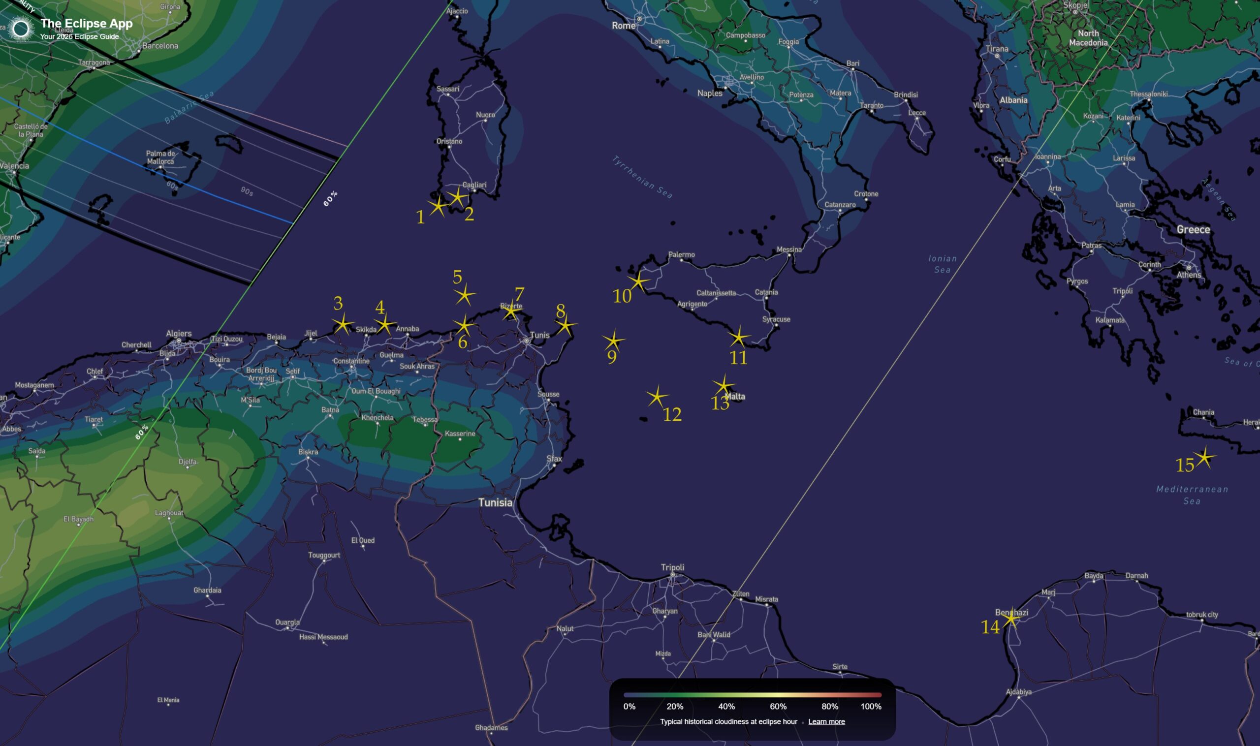 In conclusion, the circumstances for Sicily aren’t favourable enough, despite its geometrically ideal position at the end of the eclipse path.